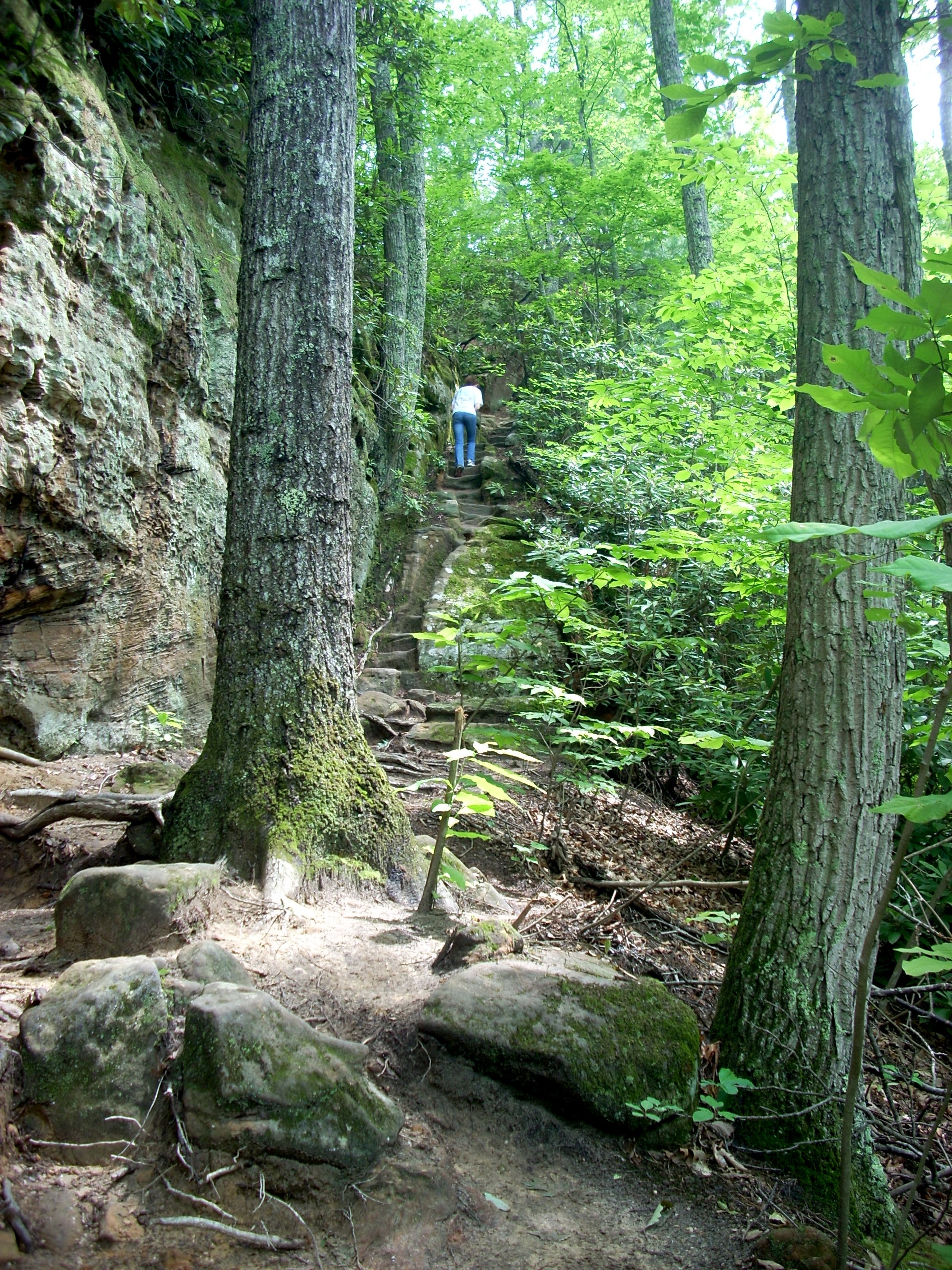 But there's something else to marvel at here. This trail is a monument to the Civilian Conservation Corps. Their carving these thousands of steps out of the rocks and cliffs is an achievement we do not honor enough. For 70 years people have trod these staircases and although the steps show the wear of hundreds of thousands of footsteps, they survive. At least, a statue or placque should be erected commemorating these men and their work.