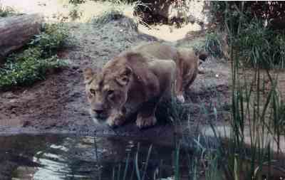 This is a beautiful site. Across the creek is a towering jumble of cliffs and rocks. Two nights when we camped there, a Mountain Lion prowled those cliffs and rocks, twice coming down for a drink (photo right). Once, just at dawn, a Moose carried off the backpack of one of our group. He scrambled out of bed and chased the moose half a mile down the trail until it dropped the pack. Elk stroll through the site and large birds ride the air currents overhead. We advise you to stay here two nights and hike up a side trail to Haynack Lake while adjusting to high elevation. When you leave here, you're going to climb the longest and steepest ascent in the entire park. You'll be climbing Flat Top Mountain (12, 324 ft.), hiking across it, then descending the other side to July campsite. The climb up from Timberline is a relentlessly steep grind. You leave tree cover behind as soon as you leave Timberline campsite, so prepare to shed some clothing layers as the morning warms up. As you climb, the views open up, and eventually you'll be looking 360 degrees over the entire park. You could shoot several rolls of film, and you'll pause several times to rest your legs. But you can't stop too long. |