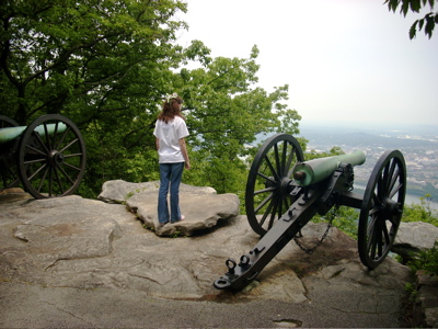 Gone With The Wind at 1150 pages is the longest book most students read in high school, or in their lives for that matter. Despite this, it is probably the most beloved. Many students read it the first time on their own in eighth grade, and reread it on their own several more times, in addition to the class time they spend on it, usually in 11th grade. For all its melodrama and the great love affair between Rhett and Scarlett, GWTW is one of the greatest historical novels ever written, and much of the history is still there, right where Margaret Mitchell described it. We love our annual trip to Atlanta to poke around this history. Actually, "Atlanta" really means the Atlanta Corridor, which begins in Chattanooga and extends below Atlanta to Jonesboro. The Chattanooga stop includes the Chattanooga ChooChoo (below left), the Battle Above the Clouds and four other battlegrounds. As Sherman fought his way South, he left additional sites at Dalton, New Hope Church, Allatoona and Kennesaw Mountain (above, left). The Battle of Atlanta left sites all over town, and finally the war spilled south to Jonesboro and the great plantations, including the one known as Tara (above, right). Atlanta had to totally rebuild, and today the sprawling city bears little resemblance to Five Points of 1864, but a surprising number of the actual buildings remain, and many of the earthworks from the battles are still in place. The Margaret Mitchell home, where she wrote the novel, is also still there and open for tours. |