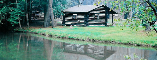 The Gateway Lodge is one of America's greatest forest retreats, offering rooms, suites, cabins, and an outstanding restaurant. Gateway's rooms and dining hall are in a beautiful 1933 pine and hemlock log structure tastefully maintained and updated over the century. Floors are oak. Except for an updated front porch and stairs, and a wing added for the pool, the lodge today stands exactly as it was built. There's an indoor heated pool and sauna. The small Tap Room resembles an Olde English Pub. The restaurant has a beamed ceiling and log walls with antique rifles, harnesses, snowshoes and other artifacts mounted on the walls. Wagon wheel chandeliers provide lighting while kerosene lamps are on each table. Most of the dishes and silverware are pewter. The food is excellent and the wine list includes 225 varieties. They serve breakfast, lunch and dinner, so you could stay here for two days, explore the forest and the river, and come back to the lodge for all meals. For couples, families or a small group there could be no finer beginning for a vacation trip. If you really want to get comfortable in the wilderness, the Luxury Suites include jacuzzis right next to the fireplaces. From I-80 exit at Clarion, turn left, go straight for 13 miles, turn right on 36 and go south for four miles. Gateway Lodge is on the left 1/4 mile past Cooksburg Bridge.