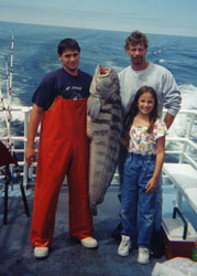 We also suggest a deep sea fishing trip. This is one of the great fishing grounds of the world. You can catch Cod, Haddock, Mackerel, Pollack, and Flounder with an occasional Blue, Sea Bass and what they locally call Wolf Fish. All are good eating, and can be packed in dry ice or vacuum sealed for your trip home, or if you're not going home in a few days, you can ship it to a friend to put in their freezer for you in exchange for a share. Or you can take it out to Morton Park for a fish fry. The rates are among the best on the Atlantic Coast : $42 for an adult and $30 for kids for an eight hour trip, and special family or group rates bring it even below that. A climate controlled cabin with food and beverages lets you take a break on especially hot or chilly days. Bait is free. You can rent the equipment for $6. This is a very productive area and you will definitely catch fish. Stanley Tavares and crew have all the latest technology on board to locate the fish and they will go to the part of Cape Cod Bay or Massachusetts Bay where your chances are maximized. We think there's another reason you ought to do this. With global warming, increased commercial fishing all over the world, the continuing pollution of ocean waters, and the rising cost of fuel, it is uncertain how much longer this kind of experience will be possible. Kids today may spend their lives as adults in a world where deep sea fishing is just a memory. This trip to Plymouth may be their last chance. Take plenty of photos for their family albums. www.captjohn.com. |