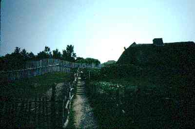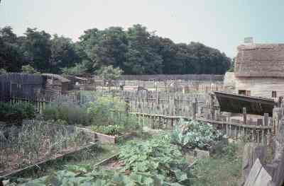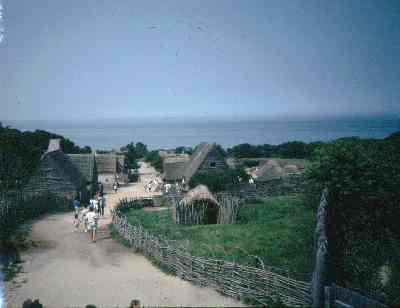 It took the Pilgrims most of a decade to develop a civilized lifestyle. That first Winter the women and children stayed on the ship while the men camped out. The second Winter they lived in dugouts in the side of the hill. The third Winter found them in hovels. By the fourth winter they had begun building legitimate houses. It wasn't until 1627 that their colony looked like a real village. So that is the year frozen in time at Plimouth Plantation. Very little remains of the years 1620-26 except for documents. Beginning in 1627, we have physical evidence. |