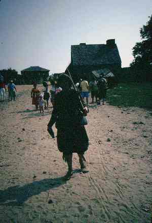 | It is critical that you do not try to hurry a visit to Plimouth Plantation. There is much to see and the glory is in details. You need to talk to Pilgrims as they work in gardens, fix dinner, feed animals, sew clothing or repair roofs. You need to sit on a rock or fence and absorb the village sights and sounds. You need time for photographs, to watch musket drills, town meetings and presentations. You time to ask questions and listen to questions of others. You need to hear music and sample food. And you need to step into each house, barn and shed. Allot at least half a day | ![]() |