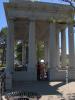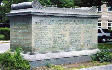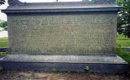 From Plymouth Rock, cross the street and climb the steps. This brings you to Coles Hill, a rather grim site. During that awful first Winter, when half the entire colony died, the Pilgrims were afraid to let the Wampanoag know how many were dying, so they buried the dead wrapped in blankets in the middle of the night in unmarked graves atop Coles Hill and tried to disguise the graves as gardens being dug, ignoring the obvious fact that it was midwinter and the natives were not stupid. Unfortunately, over the coming decades, well after Plymouth had become a village, the bones of those early victims began surfacing, often at the base of the hill after heavy rains. Everyone knew whose bones they were so they were collected over time and carefully preserved. Eventually the hill was excavated and the remaining bones gathered, cleaned, dried and added to the collection. Then, a Sarcophagus was built and installed atop Coles Hill. The bones of everyone were placed inside, and all their names inscribed on the outside. After the hill was excavated, it was built up, so today it is higher than it was during those early years. |