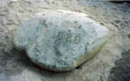 | It all began with Plymouth Rock and 380 years later it still does. The town of Plymouth revolves around this old rock. It's the first place tour buses come. Every business in town locates themselves as "just up from The Rock," or "Two blocks from The Rock." And we suggest your day in town start here. It's not hard to find. Just come to the center of town, park at the dock, and here it is. In early June you can get to it easily, but by later in the Summer you'll have quite a line, sometimes over a block long. The rock is protected now, from people by a railing, from the weather by the fine marble portico, and from most seawater by its raised throne, although especially high tides and storms still dampen it. They were going to move it to the museum a century ago, but the rock wouldn't go, and when they tried to force it, it split (if you look carefully, you can see the crack in the photo above right). They took this to mean the rock wanted to stay in its beachfront location, so they built the structure around it. However, like a glacier, you only see the tip. 90% of Plymouth Rock lays buried in the sand. Much more of it was visible in 1620. | ![]() |