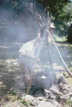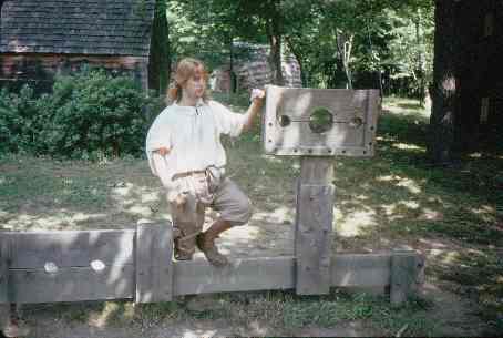 The Puritans believed Work was Holy, a celebration of God on Earth. They believed God bestowed his Bounty on those who helped themselves. So when they were not in Church, they worked. The Puritans did not believe in any form of recreation beyond childhood. They allowed their children toys, but once they were old enough to help the family in its chores, childhood was over. Old Salem Village was right on a fine beach, but the Puritans did not swim in the ocean. They did not believe in games or dancing. They thought Christmas and Easter were pagan holidays ("Christ never saw a Christmas Tree or a rabbit delivering eggs"). | ![]() |