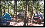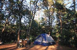 Early June should not be a problem, but if you come later, campsites are in great demand and Paine's and Horton's may be full. In that case, Nickerson State Park is down at midcape, 30 miles from Provincetown, which eliminates bike use and makes for longer drives back and forth. However, it's a great place to camp. There are 420 sites, in the woods as shown at right. These sites are on the shores of eight freshwater kettle ponds formed by glaciers 10,000 years ago and full of trout. The Cape Cod Rail Trail, the old Provincetown Railroad right of way converted to bicycle use, passes right through Nickerson. You are a close bike ride from Skaket Beach on Cape Cod Bay, and a five minute drive from groceries in the town of Orleans. Nickerson has timed showers taking coins for three minutes of hot water. Phone 508-896-3491. www.reserveamerica.com. . |