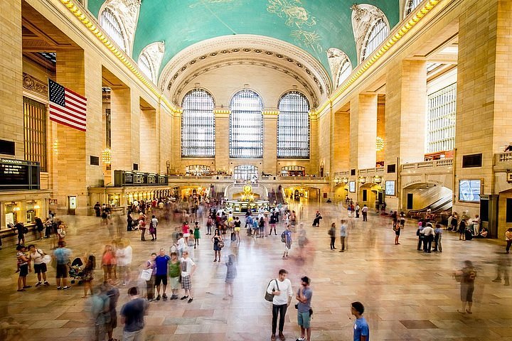 Assuming you don't drive all night (which would make a vacation quite unenjoyable), the drive to Acadia from any where in the Ohio Valley would take three days, and from further South or West four. You are actually closer to the Rocky Mountains (two days) than Acadia. And it's a hectic three days, since the interstates in Pennsylvania, New York and Massachusetts are full of tractor trailer trucks. Unless it's your first trip back that way, and you just want to see the country, we recommend you take Amtrak or fly. Your FIRST option would be to take Amtrak. It's a very reasonable option. You could add an overnight in New York City and/or Boston and have a very nice experience. You would change trains at New York City's Grand Central Station (photo, above) and Boston and finish in Portland, where you rent a car and drive three hours to Bar Harbor. |