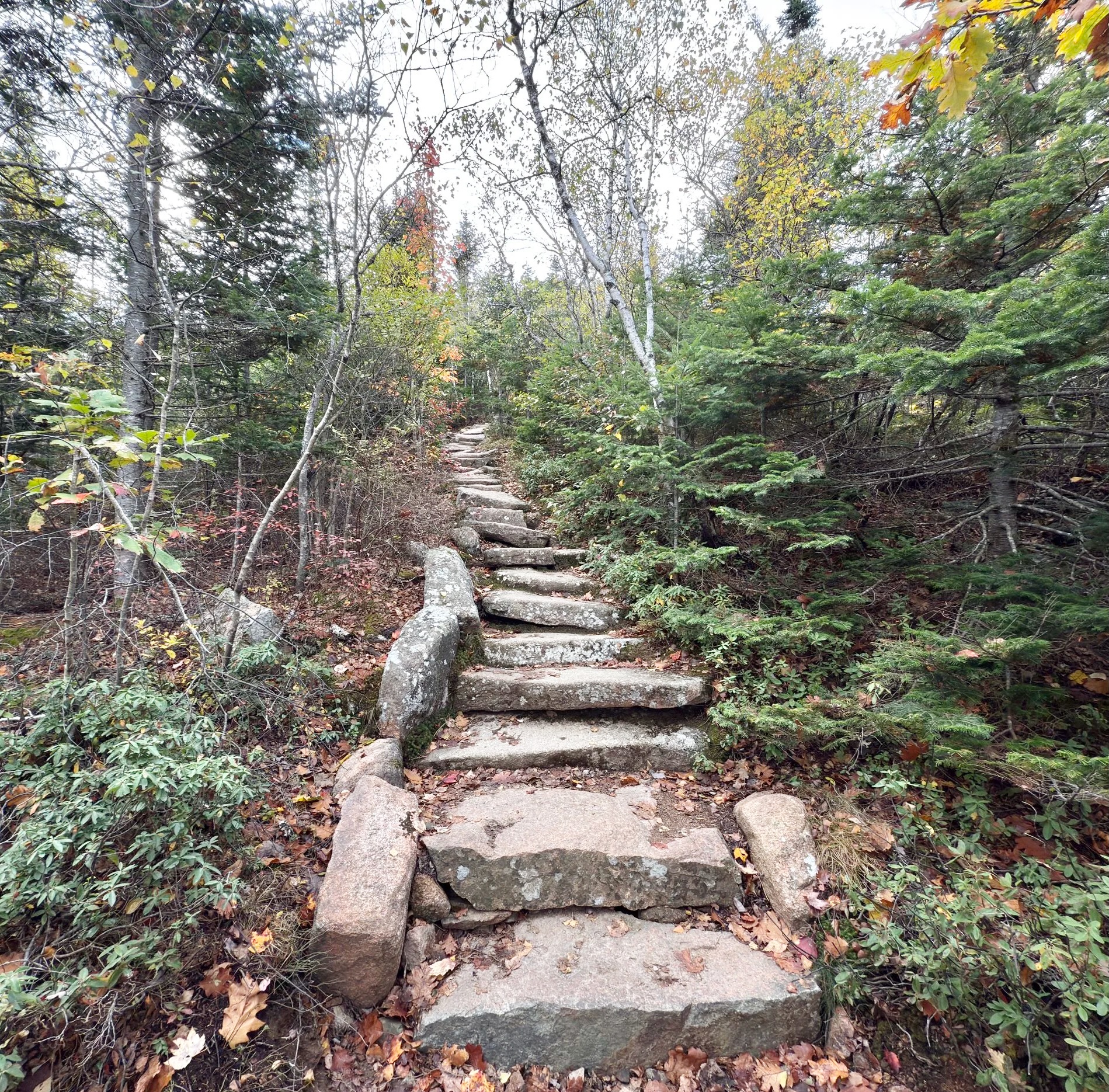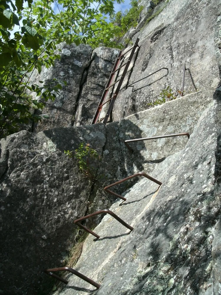 There is no backpacking or "wild camping" allowed on Mount Desert Island. Day hiking is the only option. But these are some of the most spectacular, challenging and sometimes dangerous day trails in the nation. The views are often breathtaking, looking out over mountains, the ocean and islands. You should not only be in good shape but be pretty flexible and athletic because there's a lot of scrambling and vertical climbing. You should have good body balance and tolerance for heights. Then you need to come well equipped. You need good, rugged shoes; a good day pack; and two bottles of water. You need good lightweight parkas for rain and cold, since the weather can change here in minutes and either bring intense rain or high wind and 40 degree cold, or sometimes all three. A good camera and binoculars are nice but they should fit in your pack because during certain sections you can't have them hanging around your neck. Do Not try to take pictures of the risky sections while hiking them. People fall here to serious injury or death every year while they try to take selfies or great shots while using only one hand to hold on. Instead, take photos of others, then put away your camera and climb with both hands. |