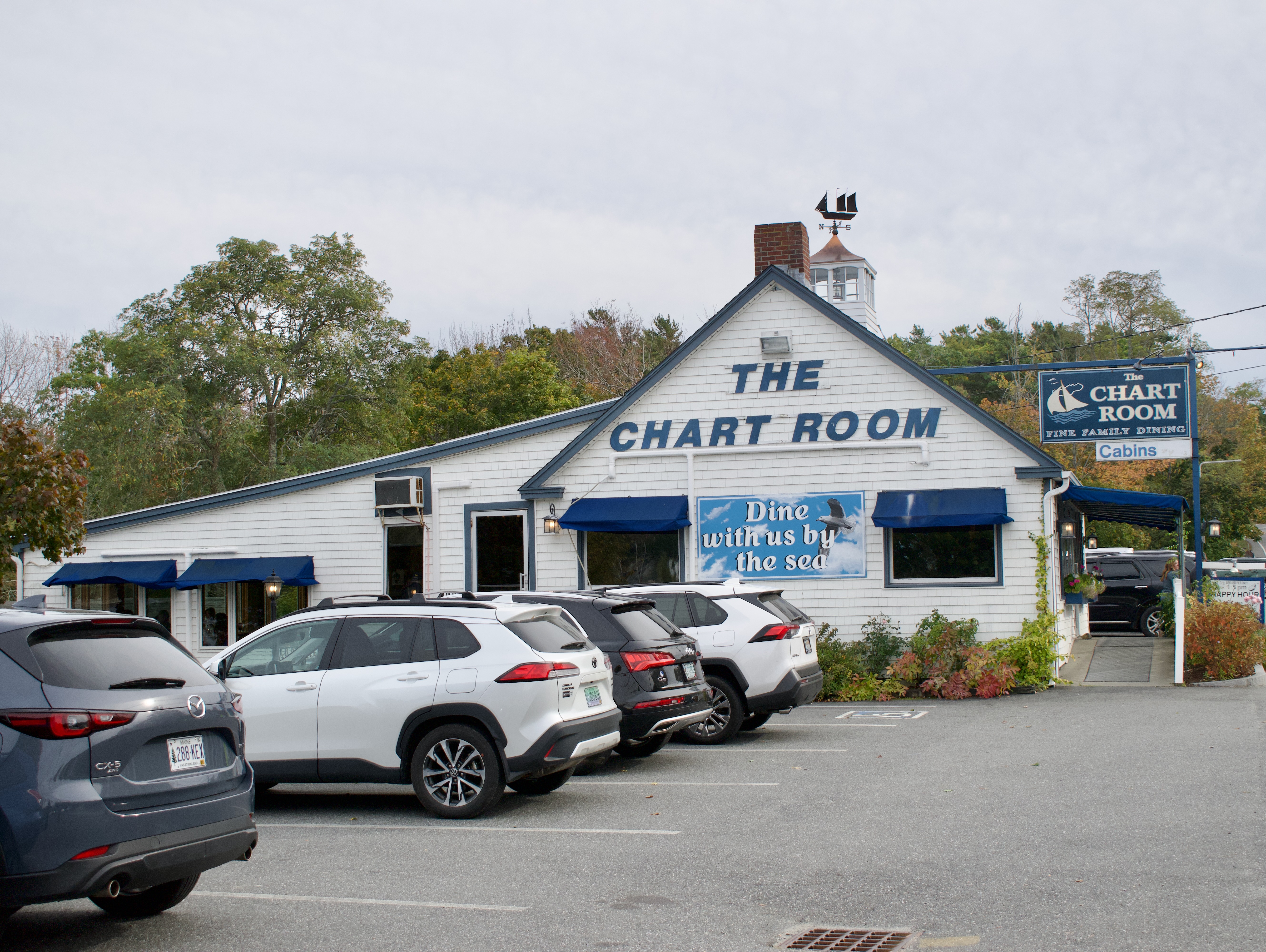 | The Chart Room is on the water front in Hull's Cove, three miles from Bar Harbor. It's Crab Cakes are disappointing since they're mostly filling, but everything else on the menu is good. They're most known for their Macadamia Crusted Haddock. Clam Chowder, Haddock Bites, Lobster Stew, Mussels and Long Necked Clams are very good. There are five Salads. They serve Haddock Broiled, Baked, Stuffed, a Sandwich and as part of a Fish n Chips Platter. All of them are good. The Halibut, Scallops, Swordfish, and Tuna are other seafood options. Tempting pasta entrees include Seafood Linguine, Lobster Mac n Cheese, Lobster Carbonara and Shrimp Scampi. There are eight additional Lobster entrees. The Dessert menu contains a dozen options but you're in Maine so the Wild Blueberry Pie is almost mandatory. In good weather you can sit out on the deck or way out on the dock and watch the tide come in or go out while you eat. Locally owned and operated for 30 years. | ![]() |