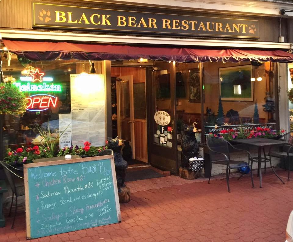 If you're in Lake Placid for a day of Olympic tourism, you should check out The Black Bear on Main Street. Their menu is a bit different. They offer seven Chicken entrees, nine Steaks, six Fish, four Shrimp, six Pastas and several miscellaneous items. They do a great job with their Trout, but the Haddock, Swordfish, Tuna and Salmon are all good. Of all those Chicken options, their signature dish is their Chicken Black Bear. They dip the chicken in egg, sautee it in light butter, simmer it in lemon, then serve it with garlic, artichockes, roast red peppers and mushrooms in a white wine sauce over linguine. There's French Onion Soup plus a Soup of the Day. They offer five Salads, sox Burgers, five Sandwiches, five Wraps and three Subs. Daily Specials include such items as Salmon Picatta and Scallops fized various ways. |