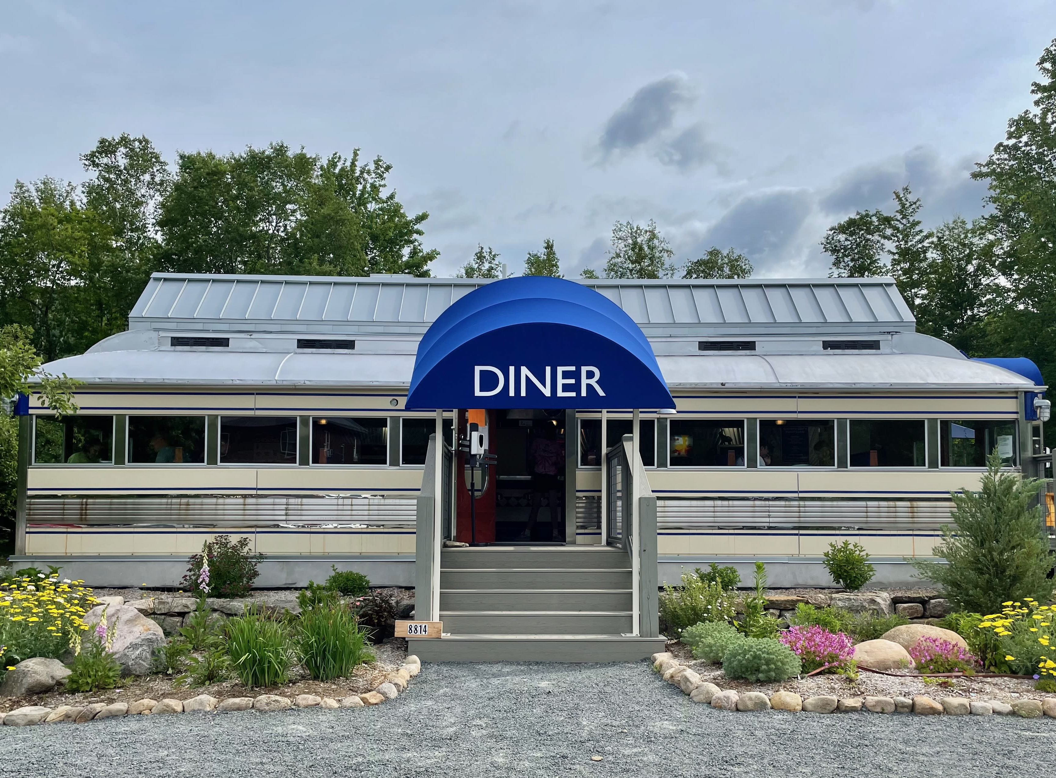 If you're anywhere in the south central part of the park, you should consider Chef Darrell's Mountain Diner in Blue Mountain Lake. We like diners and have eaten at them all over the country, and this is one of the very best. But no wonder. Chef Darrell Spencer trained at the Culinary Institute of America and cooked at resorts and restaurants in New York and Puerto Rico before falling in love with the Adirondacks, moving here and buying this diner. By definition, a diner serves breakfast all day and specializes in lunch and dinner comfort food. As lunch items the Quiche of the Day, Soup of the Day, Open Faced Hot Turkey Sandwich, Falafel Tzatziki Wrap, Turkey Cheese Panini and Two Fisted Reuben are all delicious. If you stop for dinner the Meat Loaf, Pot Roast, Buttermilk Fried Chicken and Glazed Salmon are outstanding. The Sunday Brunch menu includes specialties Beef Bourguignon, Baked Haddock and Lobster Ravioli. Many people combine a day at the Adirondack Experience Museum and dinner at the Mountain Diner. It's a very good restaurant. |