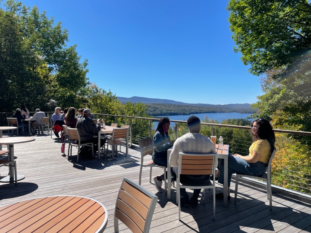 The Lake View Cafe is inside the Adirondack Experience Museum in Blue Lake Mountain. It's only open for lunch but it serves much better food than a typical lunch stop. The Soups and Chili are outstanding, and the Sandwiches, Wraps and Salads are very good. There are also several interesting beverages available. Desserts are very good. You eat on the deck overlooking beautiful Blue Mountain Lake and the mountains in the distance. If it rains there's a dining area inside. The Cafe is open from 10 - 2 pm daily during the Spring - Summer - Fall season. It closes in the Winter. |