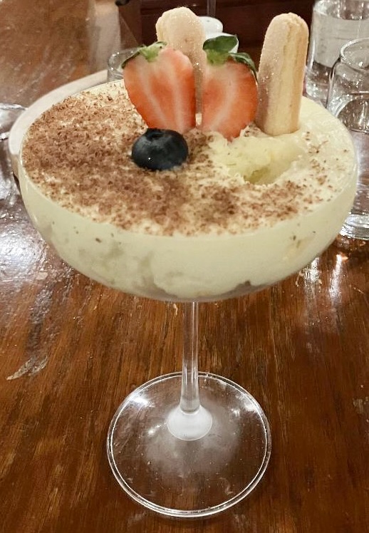 If you're not staying at the Lodge at Schroon Lake, you should drive over and eat at least one dinner at The Brown Swan Restaurant while you're in the Adirondacks. It's the best of the lodge restaurants and one of the best of all the other restaurants in the region. Chef Ramiz Jasic and his sous chefs have produced a menu with several outstanding items. The photo at right shows their finest Dessert, the Tiramisu. We've eaten at restaurants all over the country and this is the best Tiramisu we've ever tasted. Their Bourbon Mac n Cheese is also the best we've had. Their Bison Chili, Maple Bourbon Chicken, Pork Schnitzel, Bolognese, and Rainbow Trout are award winners. The Seared Tuna, Black Angus Strip, and Alfredo Cavetelli are very good. The new Sarma, a Bosnian dish of cabbage leaves stuffed with rice, pork, ham and ground beef in a rich tomato sauce, and the Beef Stew are new additions for the Winter menu and ski season. |