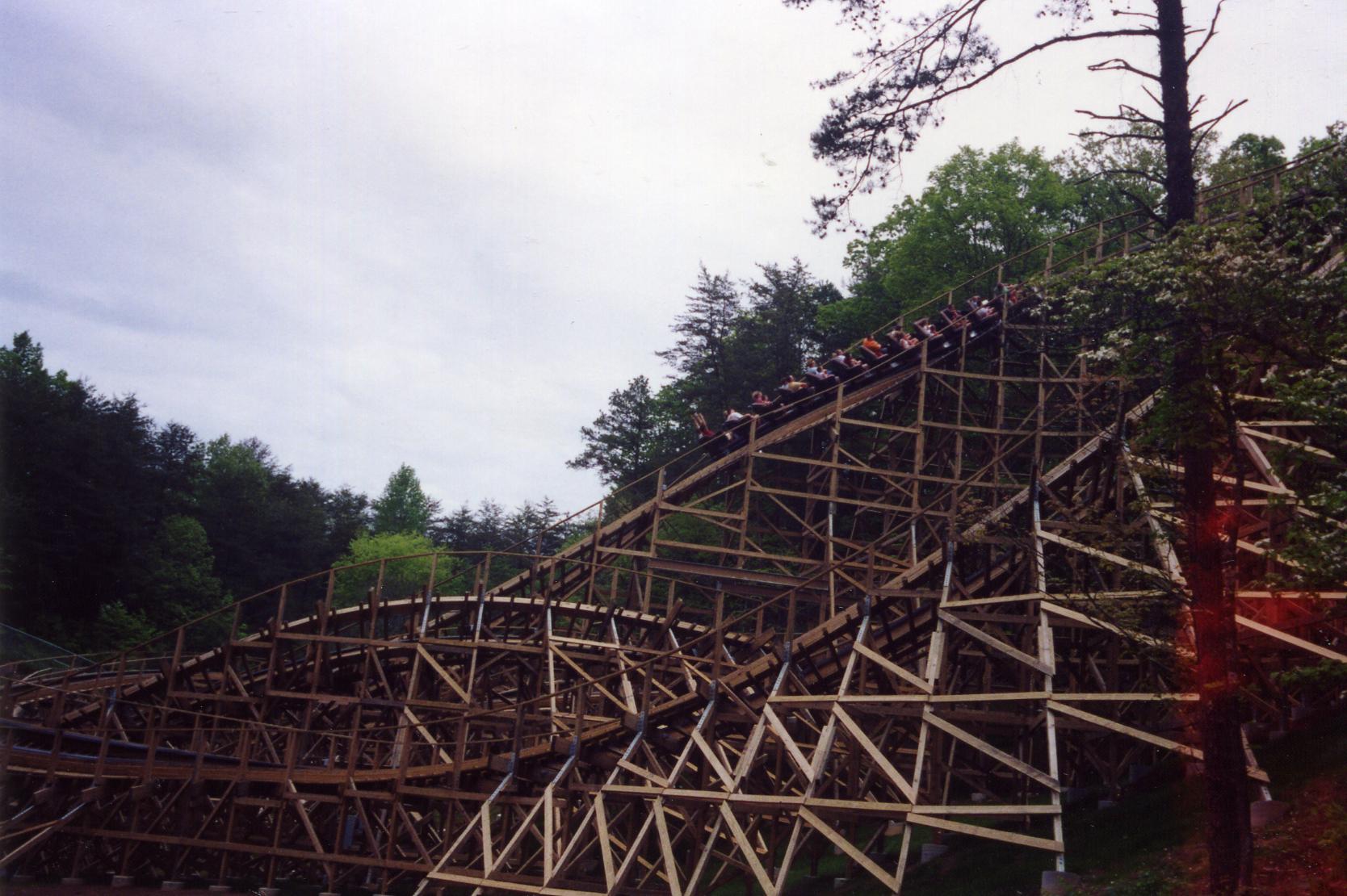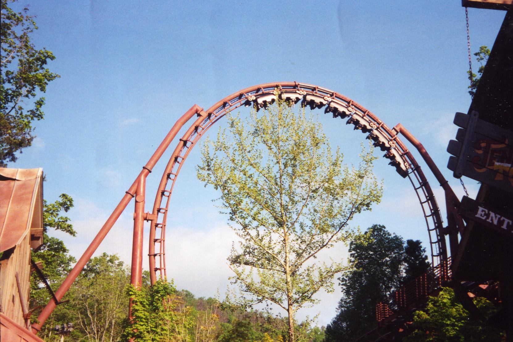 But the park she renamed for herself has evolved into a very classy attraction. Roller coaster enthusiasts have generally dismissed the park. It has never offered coasters to rival Cedar Point, Kings Island, Kennywood, Holiday World or Indiana Beach. But while they weren’t looking, Dollywood assembled a fine collection of classic flat rides and wrapped them in superb landscaping, theming, food outlets, arts and crafts, shows and boutiques. Without much fanfare, they built a great steeler, the Tennessee Tornado, at the head of the valley. |