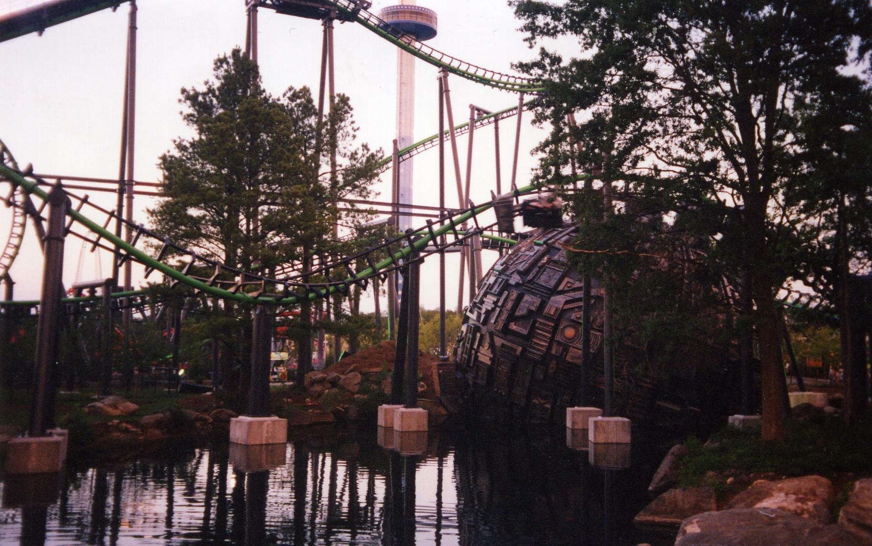Goldrusher --- At 2397 ft. and a 43 ft. drop, this was once our favorite Mine Train Ride. But it’s been losing ground, first to Disney and LoCoSuMo, then to PKI and CP. Paramount has slowed it down considerably. Starts out circling aimlessly around the station. The dive into the simulated mine and the helix out by Borg are great, but there’s too much dead time. The long straight along the river lost its magic when Paramount drained the river.