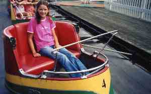 Kangaroo. # 1. The only one left. A great ride. For coaster lovers, they’ve packaged airtime without the rest. Deceptive. While riding, you think you’re dropping a huge distance coming over each descent, but watching from the sideline you realize the distance is much less. As on a roller coaster, for maximum effect it should be ridden with arms high overhead. If adults take children on, the adults should sit to the outside, because with each leap everybody is thrown outward, and if the kid sits outside, he'll be squashed. There is often as much of a line to watch as there is to ride, because seeing everybody lifted a foot out of their seats repeatedly is one of the most entertaining shows in the park. For most adults, this is just a lot of fun, but for kids or those with uneasy stomachs, it can be a thrill ride as it provides moments of weightlessness without the frightening descents or dizzying rotations. The cars have been meticulously maintained, with their plush leather seats and enamel paint. Very smooth and tight. This is one of the greatest rides in the park for taking photos of others in your party, since you can stand very close to and ahead of the action spots and all you have to do is push the shutter when the wheel leaves the lift. Not to be missed. |