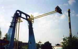 | Sky Coaster. Standard ride. They crank you up to a high tower, then release you to swing down and across like a pendulum. Not notably different from all the others. However, setting it up on an island so riders swing back and forth across the water (and at the bottom of the swing not very far above the water) gives this one a special flavor. This is one of the few rides in the park not included in the admission price. | ![]() |