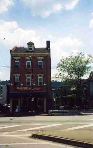 If you're arriving or departing around lunch, you really should stop at The Double Wide Grill on Carson Street. It will be one of your wackiest eating experiences. The Double Wide is a gas station converted to a restaurant. The outside still looks like the old gas station, but inside they've built the bar around the base of the hoist and left most of the tools and equipment hanging on the walls and a green pickup up on the hoist(see top right). They're only open 11-3. Some of the items are just fun, like the Hubcap Potatoes (hand breaded garlic and herb seasoned red potatoes served on a hubcap), Build Your Own TV Dinner, or 7 Up Pancakes. But don't let it fool you. There's some serious cooking here. The Crab Black Bean & Corn Fritters, Brie & Spinach Stuffed Portabello, Avocado Sandwich, Portabello Reuben, Beef Chile Omolette, Rebel Yell Jalapeno, and Tilapia Taco are very creative, unique and delicious. If weather permits, you really need to sit outside and soak up the Carson Street ambience, this being one of the great streets of Pittsburgh and America, every bit the equal of the French Quarter, Greenwich Village or the Riverwalk. |