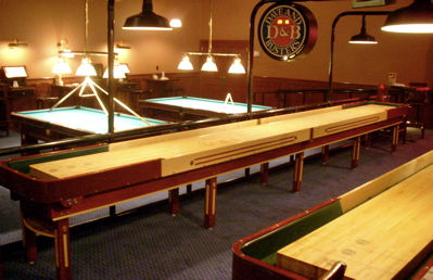 If you have several kids or a youth group with you, consider Dave & Buster's (Waterfront). There's the second best arcade you've ever seen, a pool hall, combination pool & table shuffleboard hall (shown right), a bar and a surprisingly good restaurant. Its entrees range from $13 - 19, and the menu has all the offerings : seafood, steaks, chicken, ribs, soups, salads, and burgers. In the center of the complex. | ![]() |
