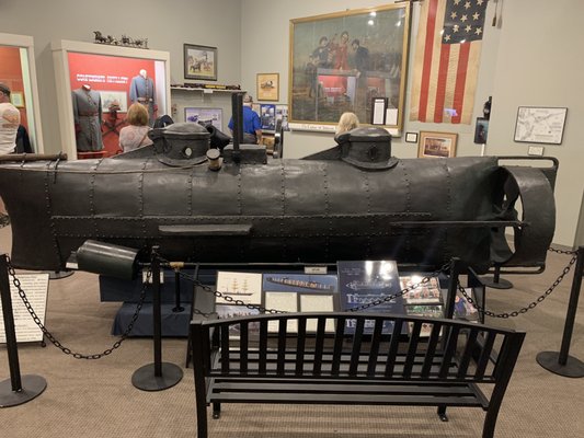 The Bardstown Civil War Museum is the best of the six collections. Among other valuable artifacts, it shows this submarine, the Hunley, which succeeded in sinking Union ships before itself sinking. The museum contains paintings and photos along with weapons, uniforms and other artifacts. It contains both Union and Confederate items. Importantly, this is a Museum of the Civil War West of the Alleghenies, so it does not focus on battles at Gettysburg, Antietam, etc., but on those at Perryville, Nashville, etc. Both Union and Confederate armies occupied homes and plantations in and around Bardstown, and many of the items displayed were donated or loaned by local families. |