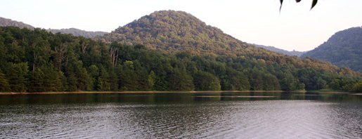 This is a typical view from the West Pinnacle. Here we're looking South, into Jackson County. Hikers who started the day wearing jackets or sweaters usually take them off here. The sun warms all the pinnacles and overlooks, even in late Fall and early Spring. That water in the distance is Owsley Lake. It's the water supply for the town and college of Berea. It produces 798 million gallons of water annually. The forest is also the watershed for that water.To protect its quality, the 1300 acres of timber surrounding the lake are not commercially harvested. |