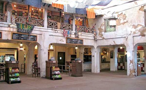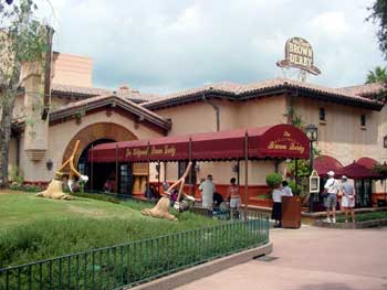 Tusker House is located in the Animal Kingdom's African section, right next to the Kilamanjaro Safari. It's a buffet restaurant, with a spectacular "Wall of Flame," an 18 ft. rotisserie roasting every imaginable meat throughout the day. This is a great place to eat breakfast just before heading out on Safari. The buffet includes a vast expanse of waffles, eggs, yogurts, bacon, fruit, breads, juices, hot beverages, and various dressings. But the lunch and dinner buffets are also pretty impressive. In addition to that long row of roast meats, there are salmon, sushi (made in front of you or you can make your own), salads, breads, rices, pastas, curries, excellent fresh vegetables, and 20 choices of desserts. There's an African theme here, but curiously there aren't as many African foods available as there are at the restaurant over at the Animal Kingdom Lodge. This is also one of the great character restaurants. Donald Duck hosts a Safari Breakfast at which kids can get their photos taken with him and have their autograph books signed. At lunch and dinner Donald and Daisy are present and other members of their entourage (Goofy, Scrooge, etc.) drop by. |