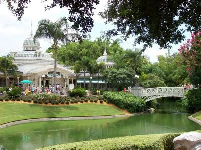 Many long time Disney visitors consider The Crystal Palace the best restaurant on Disney property. This is a beautiful building in a beautiful setting with the finest buffet in Orlando. Salads, pastas, veggie dishes and desserts (tarts, cheesecake, key lime pie, chocolate mousse and soft serve ice cream) are especially good, and there's even a kids' buffet. The fresh roast is carved right in front of you. They do a fine job with chowder, mussels and salmon. Service is outstanding. As a final touch, their coffee is great. Winnie the Pooh and his entourage hang out here so if you have Hundred Acre Wood fans in your family this becomes mandatory. Since portions and beverages are unlimited, this is one of the best deals in the park, and is especially good for those on the meal plan. Its biggest crowds are in the 90 minutes before the Electric Parade. |