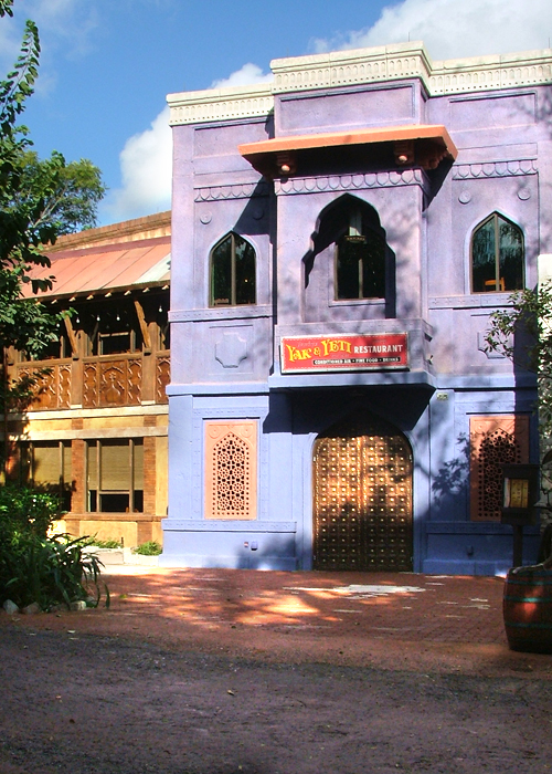 Over in the Asian section of the Animal Kingdom, The Yak & Yeti is a Himalayan restaurant lavishly decorated with artifacts from the mountainous sections of China, India, Thailand and Nepal. The menu here is quite exotic, what is technically Pan Asian Cuisine. If you're used to straight Chinese or Indian back home, this will definitely be a different twist on the same basic flavors. Servings are very generous. Back home most people would take home part of their meal for tomorrow's lunch. Knowing this, be careful ordering appetizers, and you will probably not have room for dessert. However, this is a tough decision, because they have several delicious Appetizers : the Pot Stickers, Ahi Tuna and Won Ton Soup leading the list. Their signature entree is a Seafood Medley (mahi mahi, scallops, clams, mussells, shrimp, zucchini and tomatoes in red curry and coconut sauce over a bed of jasmine rice). We have eaten in some of the best Asian and Indian restaurants in the country and this is competitive with any of them. Maple Tamarind Chicken, Ribs, Miso Salmon and the Shinzong Steak are also very, very good. Among the Desserts, someone at your table MUST try the Fried Wontons and Mango Pie (in raspberry sauce). If you're into mixed drinks, the Mango Daquiris here are outstanding. Take time to wander around the restaurant. It has an impressive collection of authentic statues, carvings and other items. The intent is to recreate the flavor of the restaurants over there, and over there tables are placed very close together. They are here, too, so don't let it bother you. Definitely make a reservation, and make it for early in each time frame, 11:30 for lunch and 5 pm for dinner. Later, even with a reservation, expect to wait half an hour or so. If you don't have kids along, there's a bar in here which is a nice air conditioned break from the heat and humidity, and they serve some pretty good drinks. This is the only bar in the Animal Kingdom. There's also a deck. You can order off the same menu and eat on the deck while watching the African and Asian wildlife. The Yak & Yeti is owned by Landry's and run by the same people who run the two Rainforest Cafes, but they still accept the Disney Meal Plan. |