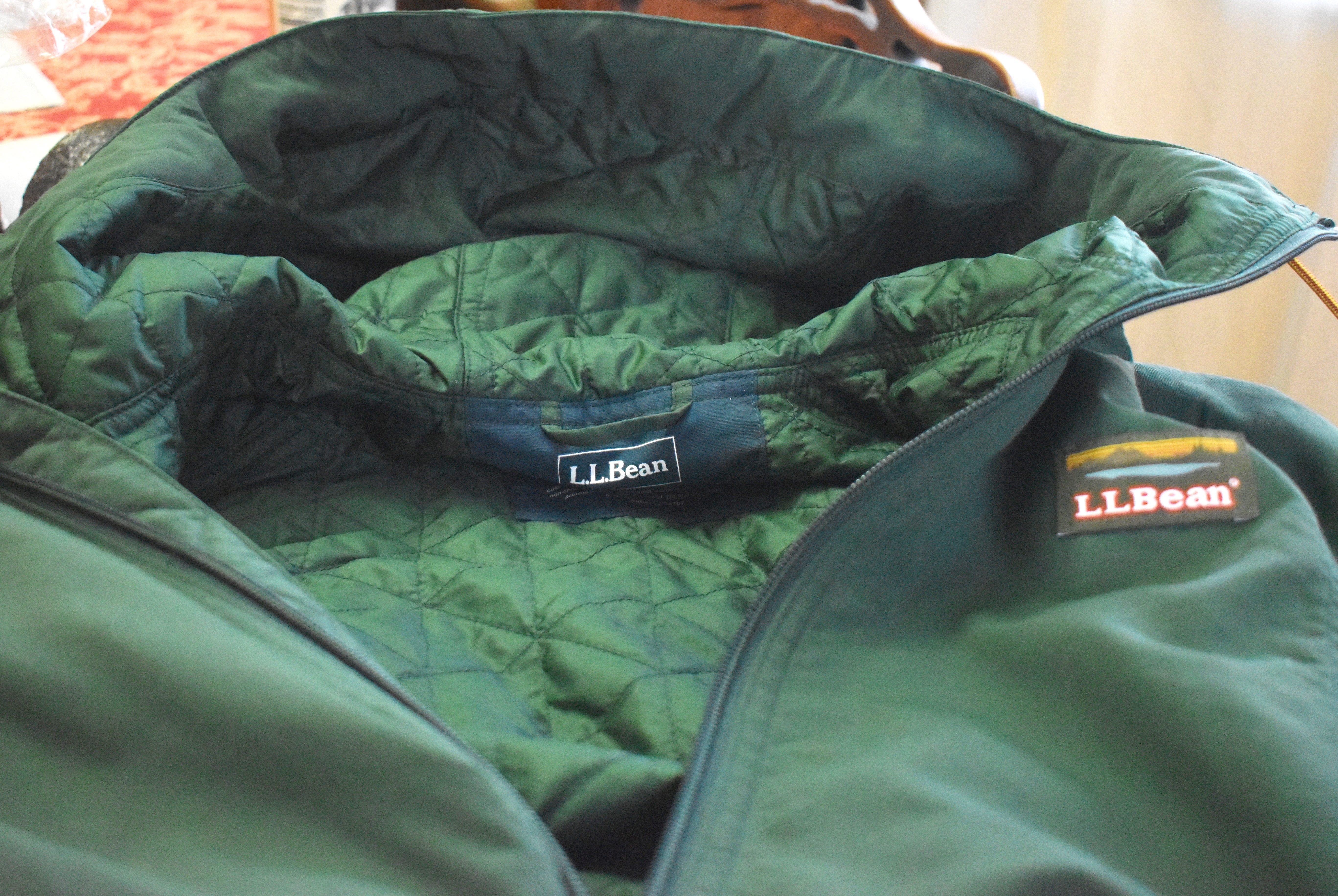 There's a reason for this. You can be active in this anorak without getting hot and clammy. Any garment that is made tight enough to seal wind and rain completely out traps body heat and perspiration in. In this anorak, you can hike, cast, chop wood, rake leaves, mow the lawn, cross country ski or pull a sled up a hill without getting uncomfortable. To keep you warm and block the wind, L.L. Bean has lined the Mountain Anorak with Primaloft. As you can see in the photo at left, it's quilted into both the body and the hood. Primaloft was developed for the U.S. Army as a synthetic down. It lofts like down but, unlike down, retains its loft and insulating properties when wet. So even if you get caught out in a downpour, and rain begins seeping in, you'll still stay warm. Primaloft is also very light. This allowed L.L.Bean to make this updated anorak thinner and lighter than its beloved predecessor. So you can pack it, in a backpack or travel pack, very compactly. |
