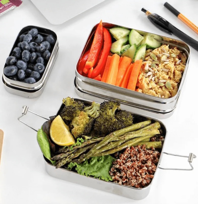 Bento Boxes have been around for a thousand years. The Japanese developed them in the 1000s to carry food, and in the 1100s began making them from Bamboo and decorating them more and more artistically. They came to have great cultural significance to the Japanese, standing for beauty, balance, simplicity, prosperity, and proper nutrition. Each Bento Box is supposed to contain salty, sweet, sour, bitter and savory flavors. The morning packing of a Bento Box demands careful focus and artistic arrangement. In Japan, if you are unable to pack your own, you can walk into a store or street stand and buy a Bento Box. Hotels provide them to their guests. Airlines and trains provide them to passengers. Schools provide them to students. Hospitals provide them to patients. Meanwhile, Western Hemisphere consumers have come to distrust plastic containers. They have read too many studies about how plastic leaches into food and drink and how all of our blood and tissues contain polyvinyl chlorides and other plastic residues, causing Cancer and other problems. So Bento Boxes have begun appearing in the West. People are beginning to use them for lunches on the job, and now fishermen, hunters, hikers and backpackers are beginning to use them. Instead of Bamboo, which is not readily available, U.S. and European Bento Boxes are made of stainless steel. They're inexpensive, easily cleaned, sterile, sealable with pressure clasps, and allow for separation of various food items.
