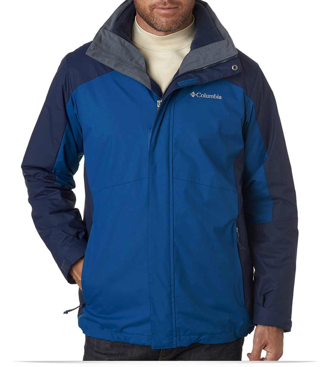 Columbia has a reputation for well made outdoor adventure clothing and its Interchange Jacket is one of its best. This is a three way jacket. A complete fleece jacket is zipped inside. It's good for weather down to about 40 degrees. The waterproof shell can be worn as a rain coat. It's also one of the best windbreakers out there. When zipped together, they produce a toasty garment good down to 20 degrees. If you wear a sweater, flannel shirt or long underwear underneath, the jacket can be worn all day in very cold weather regardless of wind or precipitation. We often wear it with only a t shirt. The hood is very well made and is completely waterproof but has zero lining. You need to wear some sort of hat inside the hood. Many people wear a wool toboggan hat, but a Russian style "bomber" hat also works well. The hood is sized large enough to allow such a hat. A cord allows you to tighten the hood around your face, and a top velcro strip allows you to adjust its size. If you zip the front all the way up, it closes around your neck and chin very snugly and closes with a snap. The hood can be zipped off and on for wearing the jacket around town. The zippers are strong, durable and easy to use. Sleeves are windproof. Elastic cuffs grip the wrists and are inside the velcro adjusted outer cuffs. |