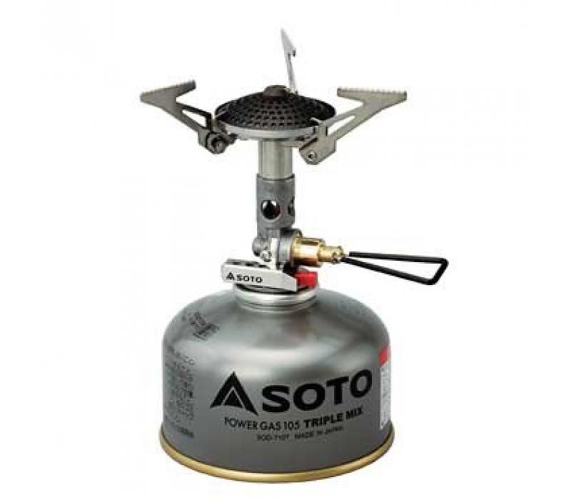 The search for ever smaller, lighter and more reliable backpacking stoves has been going on since the 1950s. Svea took the early lead with its solid brass liquid fuel Optimus model. It still sells well today and over a million backpackers, canoeists, hunters, fishermen, rangers and guides swear by it. The two big disadvantages of the SVEA are that it has to be primed before use, and it has to be cleaned between trips. Svea devotees consider these labors of love but others tired of the time and effort. So companies started offering isobutane/propane cartridge stoves. MSR finally displaced Svea with its Pocket Rocket,which was much lighter and more compact than the Optimus. The Pocket Rocket was the best seller for two decades, has been updated several times and is still popular today. But the new state of the art stove is the Soto OD-1R, called the Micro Regulator. Designed and manufactured in Japan, the Soto retails for about $70 and while similar to the Pocket Rocket, it evolves past it in several regards. Like the Pocket Rocket, the Soto screws to the top of a standard threaded isobutane canister. One canister is good for about 90 minutes of cooking. |
