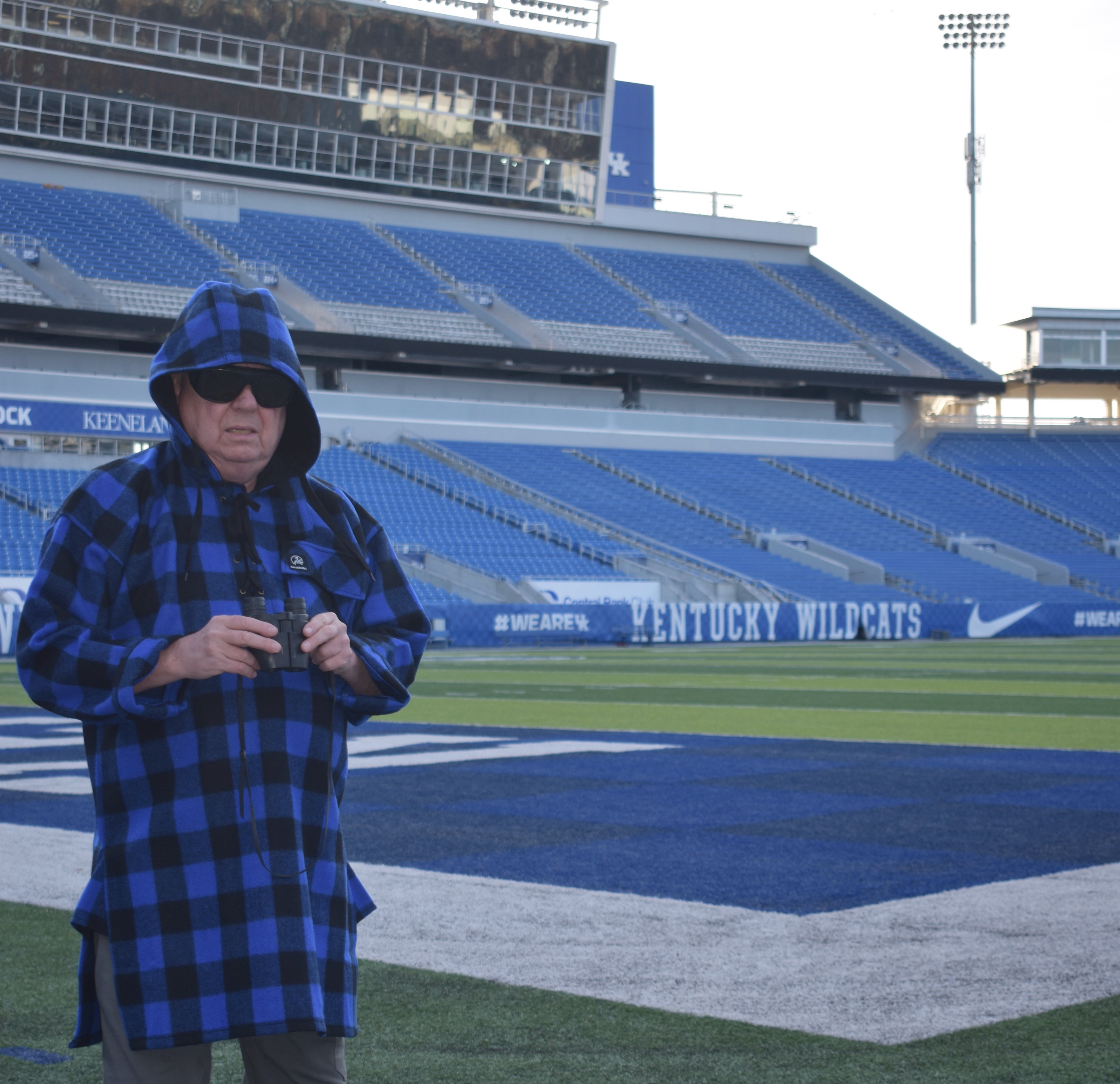It's great for watching football games. Since it comes down so far, it protects your legs and knees from those icy winds that often blow through stadiums in late October and November. You can lace the front up and pull the hood forward and be quite comfortable while fans around you are shivering or running for hot coffee. The Bush Shirt only has one pocket, up on the chest. It holds binoculars or your cell phone or portable radio. We wish it had the handwarmer pocket common on other anoraks, but many of its users carry packs, and the belt straps from the packs block those pockets, so Swanndri omitted them. If the wind quiets down and the sun comes out, you simply drop the hood back and unlace the front placket to ventilate your Bush Shirt. Unlike modern high tech polyester fabrics, the Merino Wool breathes quite well, so you'll still feel comfortable even as the sun warms the stadium. With the fabric coming down behind you to your knees, you won't be sitting on cold steel seats. If you don't take your own cushion or blanket with you, the thick wool gives you a little cushioning to sit on. If you're one of those people who are always cold, the Bush Shirt is roomy enough you could easily wear a ski sweater underneath to crank up the heat even further. |