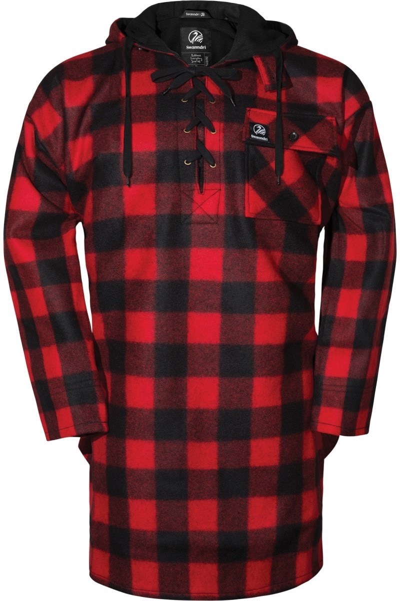 In the world of outdoor equipment, certain items have become legendary. The Svea Stove, Vasque Sundowner Boots, Universal Loadmaster Packs, Walrus Tents and Camp Seven Sleeping Bags are iconic. They have proven themselves around the world for half a century and are the gold standard to which all other equipment is compared. Add to that the Swanndri Bush Shirt. Made in New Zealand, this is the ultimate cold weather garment. It doesn't resemble anything modern, but harkens back to Native American, Viking, French Voyageur and other historic adventurers' clothing. William Broome designed it in 1913 for Australian and New Zealand farmers, hunters, loggers and adventurers. It might be described as Low Tech. It's made of Wool. But this is not any wool. It's Merino Wool, woven from the wool of New Zealand sheep, which evolved long ago to produce a wool that is more water resistant, thicker and more flexible than other wools. As a result, if you get caught out in a rain or a very wet snow, the water will simply bead up on the outside of the Swanndri and you'll stay dry and warm inside. Yes, the garment will get somewhat heavier with the weight of all those tiny drops of water, but as you hike, shovel snow, ski or move about you'll shake some of them off. The Swanndri Bush Shirt comes in red, blue or green plaid, or in solid green. It's 3/4 length, coming down to or just below your knees. It's made roomy, so you can wear a turtleneck, sweater or shirt underneath. Everybody's metabolism differs, so you'll need to experiment a few times to figure out your ideal combinations. But we've shovelled snow and gone hiking with just a t shirt inside and stayed warm in 40 and 30 degree weather. We add a turtleneck as temperatures drop into the 20s, a regular sweater down into the teens and a ski sweater into single digits. But activity level matters. Sitting still at a football game or while fishing requires an undergarment earlier, while hiking, skiing, sledriding or shoveling snow generates enough internal heat you won't need one as soon. The Bush Shirt utilizes a trick the Eskimos stumbled onto a couple of thousand years ago. It has a second layer which hangs inside like an internal sleeve. |