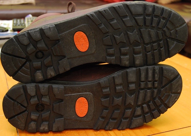 Hiking and Backpacking boots is a volatile market. Fads come and go. Brands come and go. Styles come and go. But the people who make their living out on the trails ---rangers, researchers, writers and guides --- and those who hike all the time, especially long distance backpackers, almost unanimously choose the Vasque Sundowner and have been doing so since 1984. It's been a classic for 40 years. A pair usually costs about $220. First, the Sundowner is made of top grade leather, tanned here in the U.S. Yes, that adds a little weight. But it allows the boot to be maintained with a once a week treatment of Melton or Kiwi shoe polish. Cleaned and polished, Sundowners can be worn into town like any pair of Florsheim wing tips. Second, the Sundowner uses a standard Vibram sole. This allows it to grip mud, rocks or dirt. |