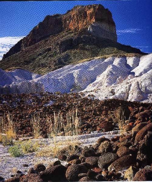 A word of caution, though : Big Bend is not a first trip for any group. This is a harsh, isolated, hot, dry land. It is not a place to learn outdoor skills. You need to already know what to do in varying conditions and have practiced those skills until they are second nature. They rescue people here and sometimes they get to them too late. There is no cell phone service and the place is so vast that it is very unlikely another group will just happen by. You will bring your water with you up switchbacks that seem like they'll never end. Afternoon heat will make people irritable, and if you're not a smooth working unit, tempers will begin to flare and simple chores will become the subject for petty bickering. We've met many Scout groups here from all over the country, and they were having a wonderful time, but there were no first year members among them. Big Bend is the second least visited park in America and the furthest from an interstate, town, railroad or airport. It has the Chihuaha Desert at sea level, the Chisos Mountains at 8,000 ft., and the Rio Grande carving three of the nation's six deepest canyons. Big Bend is home to Mountain Lions, Bears, Javelinas (Peccaries, usually mistaken for Wild Boars---it's pronounced Have-A-Leenas), Mexican Gray Wolves, Jackrabbits, Kangaroo Rats, Peregrine Falcons, Roadrunners, Burrowing Owls, Vultures, Banded Geckos and Alligator Lizards. Its plant community includes 12 kinds of cacti, and another dozen trees and bushes and flowering grasses specially adapted to the heat and lack of humidity, . Big Bend is also a geologic showcase. It was formed by volcanic action and the collisions of huge crustal blocks, then eroded by wind and water. The result is a bizarre landscape of upthrusts, fault blocks, pinnacles, balanced rocks, polished bowls, sculptures, cliffs, dikes and crags.