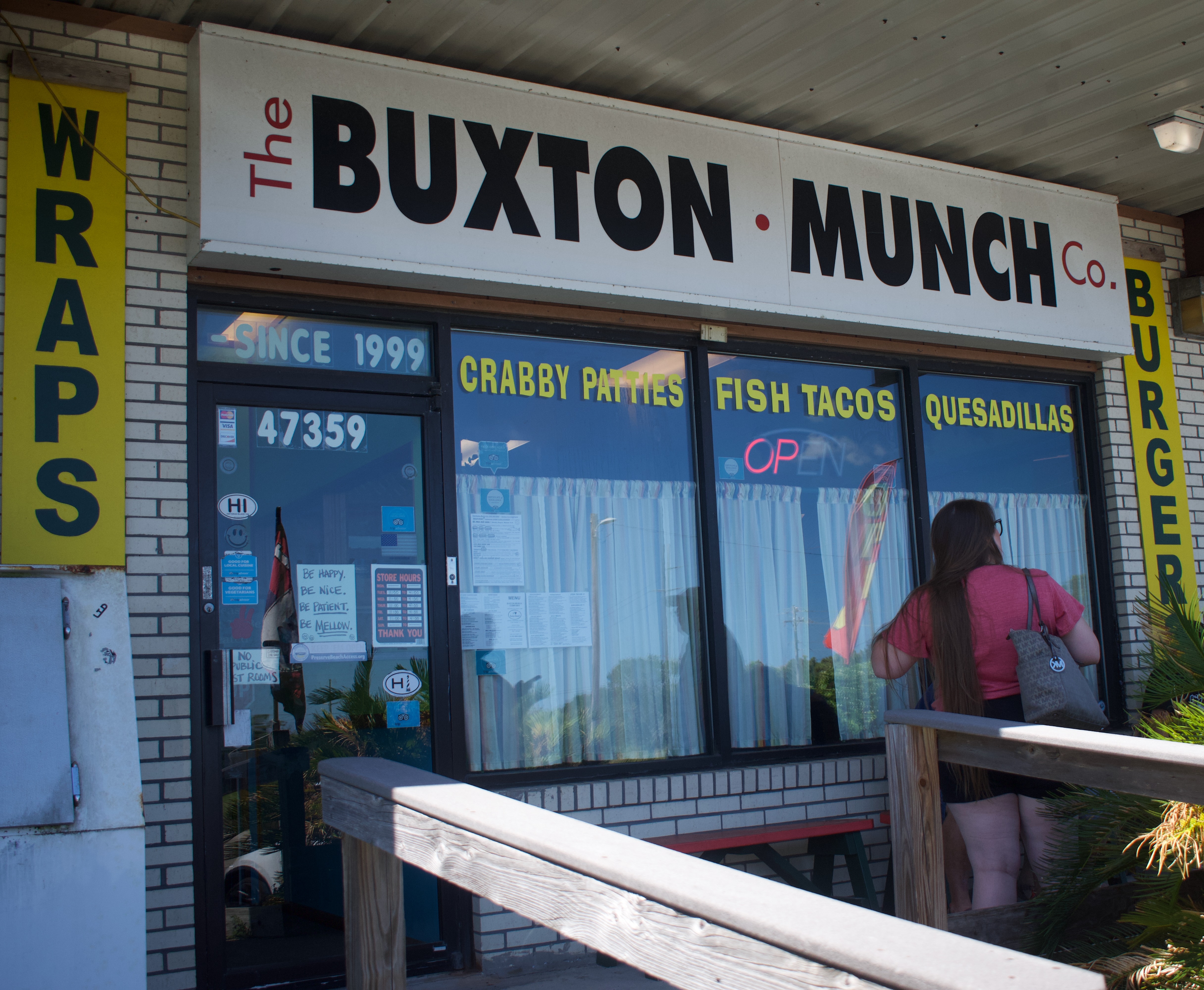 | Buxton Munch is a storefront lunch stop in the shopping mall diagonally across from Connor's Grocery. It offers mostly Wraps but is locally famous for its Fish Tacos (grilled, blackened or fried fish, shrimp or flounder, plus spring greens, diced tomatoes, black beans, steamed rice, onions and cheese). But their Crabby Patty Wrap also has a loyal following. Buxton Munch offers six Seafood Wraps, six Chicken Wraps, three Vegetarian Wraps, eight Spicy Wraps, seven Quesadillas, and six of what they call Premium Wraps. The Premiums include Prime Rib, Gyro, Club, Southern California, Turkey Bacon Cheddar, and Chicken Fritter. If neither Wraps nor Fish Tacos suit you, Munch also offers four Toasted Subs, six Burgers and seven classic Sandwiches. The Crab Cake Sandwich is particularly good and their third most popular item. These are hearty lunches, but if you're starving, there are sides of Shrimp, Oysters, Jalapeno Poppers, Cheese Stix, Fried Pickles, Fresh Fruit, Mac & Cheese, Onion Rings and Chicken Tenders. Or you could order a basket of Chips & Salsa. One of their creations that doesn't get advertised much but is one of the best sandwiches on the island is the Yellowfin Tuna Melt, a Yellowfin slice on a New York roll with lettuce, tomato and cheese. Don't let the modest storefront mislead you. This is a very good eatery. Over the noon hour the wait can be 30 minutes. | ![]() |