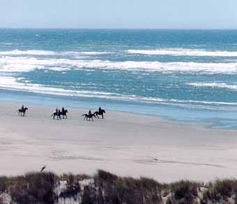 | Frisco is an east-west strip of the island between Hatteras Village and Buxton. If you envision Hatteras as a reversed L, Frisco is most of the cross bar. The northern edge of Frisco borders Pamlico Sound. The southern edge is mostly high dunes and forest facing the ocean beach. This expanse of forest, dunes and beach is where most of the horseback riding on the Outer Banks occurs, mostly radiating outward from Equine Adventures Stable on Piney Ridge Road. Frisco has the island's only airport (with its half hour and hour long trips up and down the island) and golf course, its best two campgrounds, and the Native American Museum, a surprisingly impressive collection of historical artifacts with a spectacular Annual InterTribal Powwow. Frisco only has two restaurants but they're very good. |