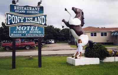 | Should you find Ocracoke charming enough to spend one or more nights, you can choose from six motels. Four are down along the waterfront, but the Pony Island, further inland, is the largest, oldest and most historic. It includes one of the best breakfast restaurants on the Outer Banks, a fine pool, and the closest location to the beaches. A long list of well known executives, politicians, athletes, movie stars and other notables have stayed here. If you make your reservation early enough, you can request one of the third floor units, which give you a view over the island, the beaches, the lighthouse and the ocean. These are classic 1950s rooms, but they've been carefully updated several times. The Pony also offers luxury units and efficiencies if you'd like to stay several days or a week. Since it's away from the crowds along the waterfront and is set back away from Route 12, the Pony is much quieter, but you're only a few block walk or ride from the action. | ![]() |