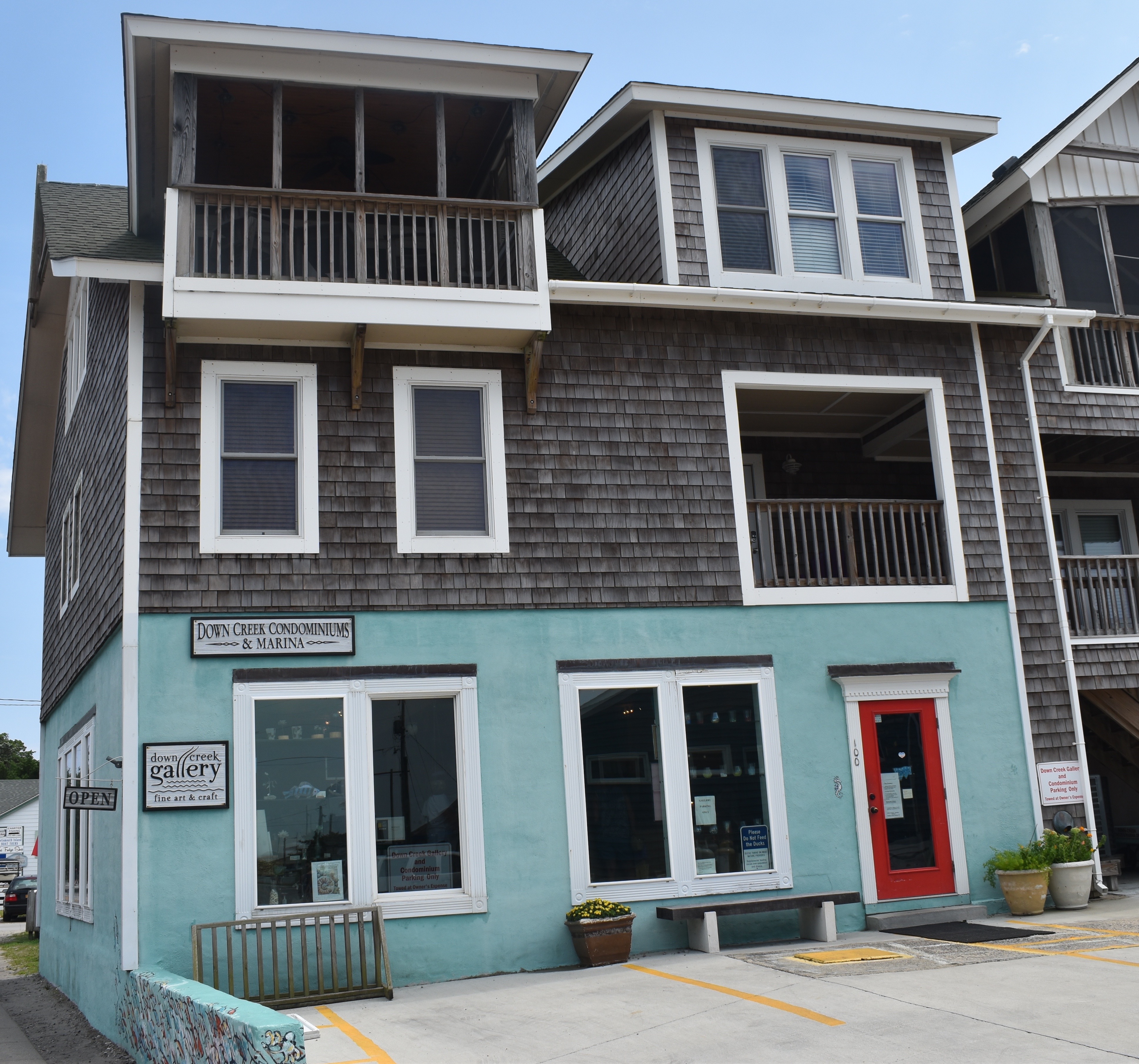 Down Creek Gallery is right on the waterfront and may be Ocracoke's best. Over 100 Ocracoke and North Carolina artists display their works here. They include jewelry, metal, wood, pottery, glass, paintings and photography. Owner Mrissa Gross is an Ohio native, an Ohio State and University of Arizona grad, who purchased the gallery from Tony McGowan in 2015. She is a gracious hostess who knows her art. Probably the most impressive pieces in her gallery are the metal etchings of photographs, especially the very large ones of Frisco Pier. The metal media lends a sheen to the photo that brings out the colors. Chris Van Atta does those. He's a Canon professional who digitally engraves some of his photos on aluminum, and others on photometallic paper. But Van Atta, Ray Matthews and others have many works on display. Gross also hosts artist shows. This is the kind of art gallery you would expect to find in a city. Some of the large pieces run over $1000 but many smaller pieces are quite affordable. For any art appreciator, this is a must stop.