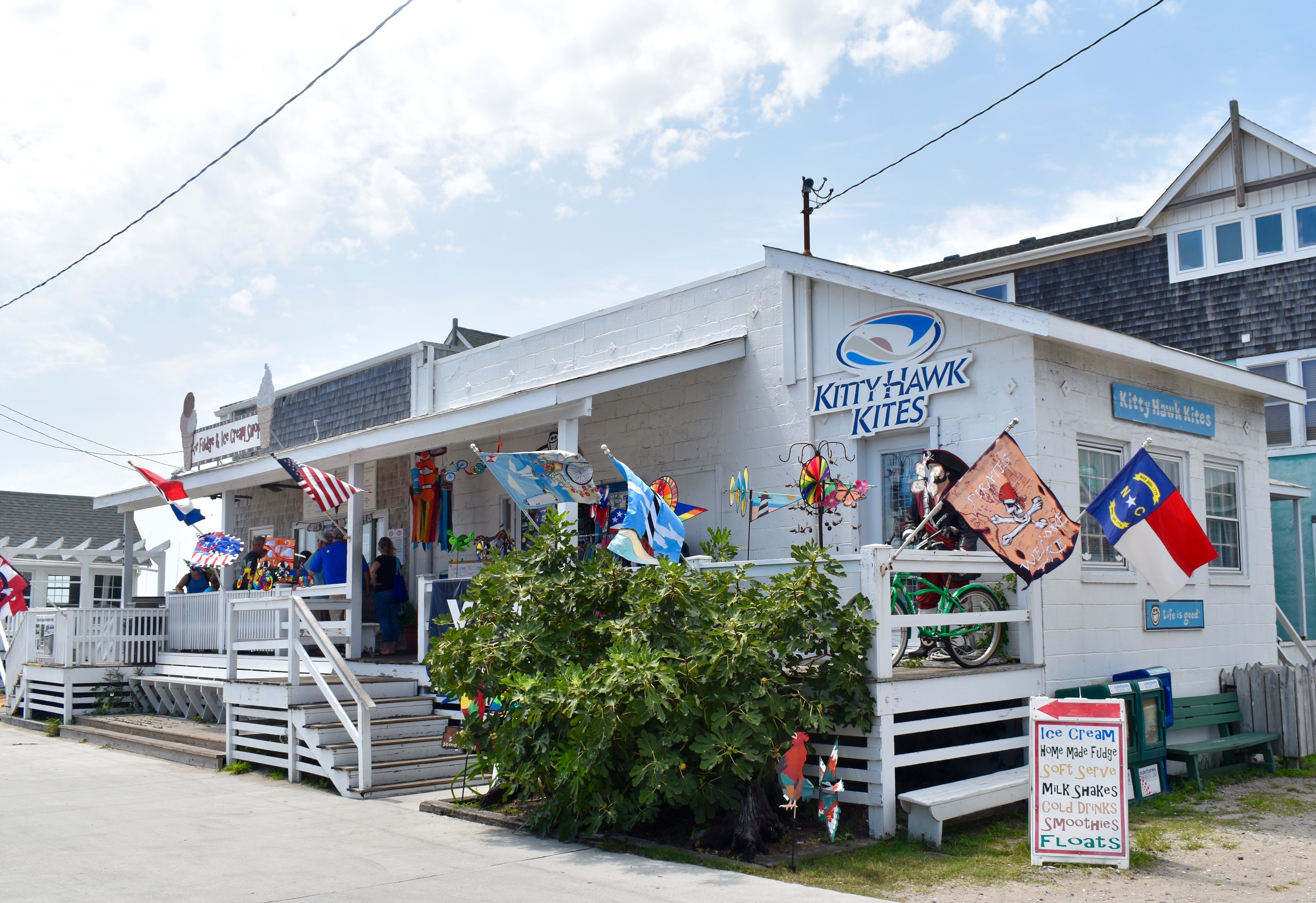 Kitty Hawk Kites has a branch here, with the usual kites and other beach gadgets and clothing. This store, right on the waterfront along Route 12, is not as big as their Avon and Kitty Hawk locations, but it's stuffed with their usual items. This one has the added benefit of the village ice cream shop right next door. |