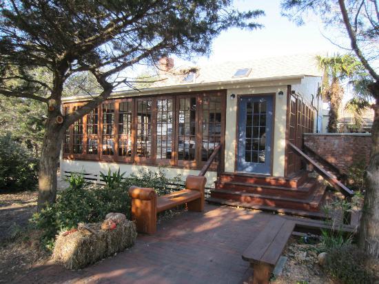 | The Back Porch is the only restaurant on the island not on Route 12, but it's worth your walking a block back. Open only for dinner (5 - 10 pm), they serve outstanding sea food. You'll probably end up eating on a screened in back porch overlooking a landscaped garden under century old Live Oaks. Among appetizers, we like their Crab Beignets. Of the entrees we recommend the Crab Cakes In Red Pepper Sauce, the Seafood Platter or the Scallops. The Soup of the Day is always good. They have the island's most extensive wine list. Locals and loyal customers debate whether the restaurant under its current ownership equals what it was like under the original owners, when it was mentioned as one of the top 10 seafood restaurants on the entire east coast. Certainly there have been some changes and but The Back Porch is still one of the best restaurants on the entire Outer Banks. | ![]() |