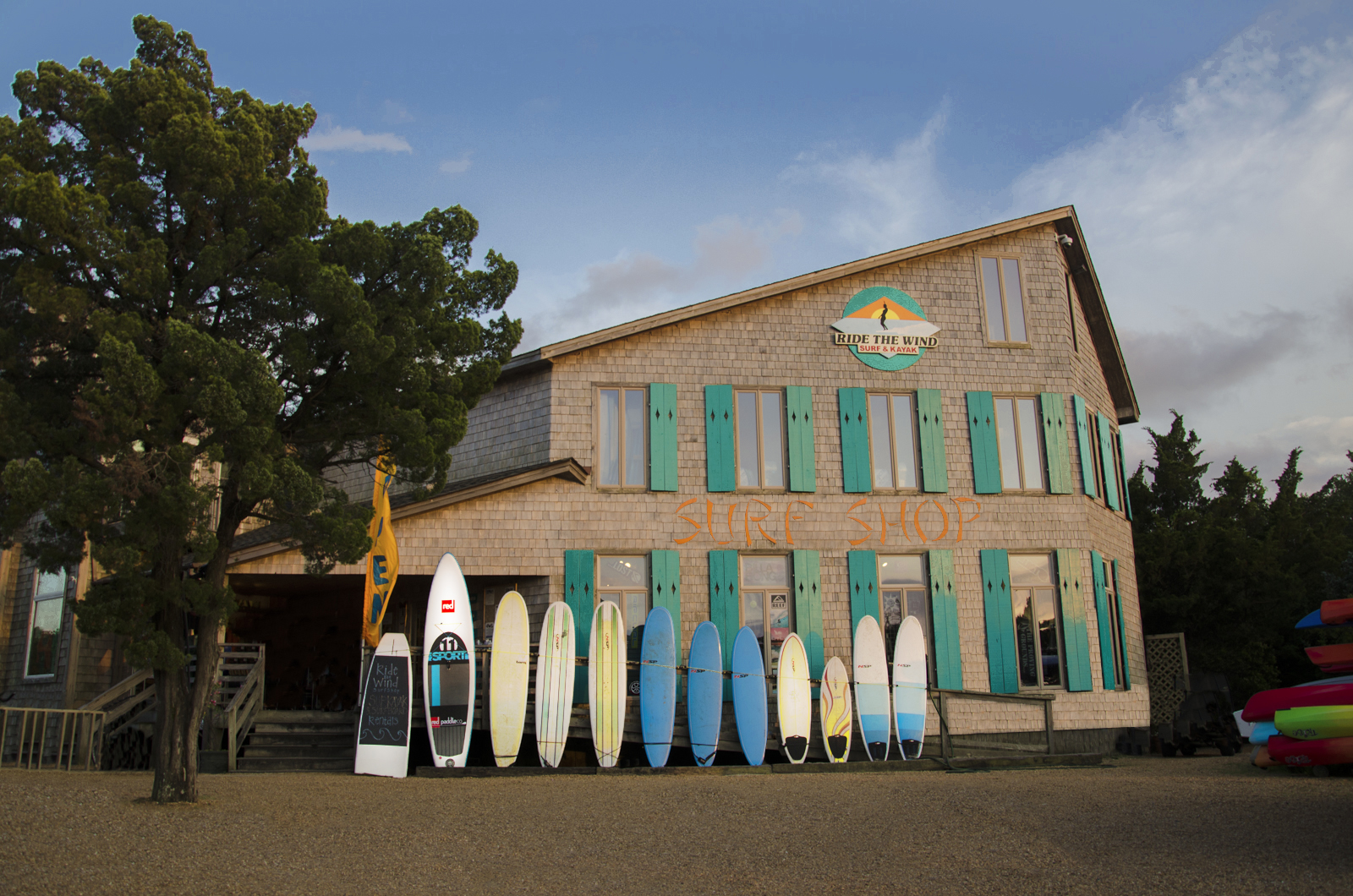 | Located at the T intersection where Route 12 turns right at Silver Lake, Ride The Wind is Ocracoke's center for outdoor adventure. You can rent or buy surfboards and take surfing lessons. You can sign up for guided kayak trips or rent kayaks for your own trip. They offer sunrise, noon, sunset and moonlight kayaking. The typical tour crosses Silver Lake, goes through the channel into Pamlico Sound, and rounds Springer Point, a wooded area of the island. Depending on weather and currents, you might visit Teach's Hole, Oyster Creek or other locations. The shop also offers kayaking and surfing clothing and equipment. | ![]() |