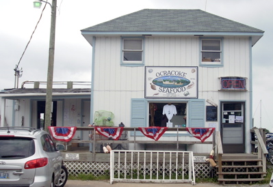 | One of the island's great stories of the decade is the rescuing of the Ocracoke Seafood Corporation. Once a local tradition, it fell on hard times and closed back in 2003. For two years the building sat there. The disaster in that closure was that without their only local processing plant, the 33 local commercial fishermen had no place to sell their catches. So they took matters in their own hands, banded together, incorporated, applied for and won a federal grant, bought the processing plant, restored it to operating condition, and reopened it. Now, once again, you can buy locally caught seafood to take back to your cottage or campsite and sautee or grill for dinner. Their menu depends on whatever the fishermen bring in that day. Today, school groups come by for tours of the fish processing. For many kids from mainland cities, it is their first time seeing where fish actually come from. And 33 Ocracoke families are back to supporting themselves in their time honored profession. | ![]() |