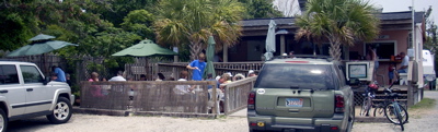 | The Pony Island is the longest continuously running restaurant on Ocracoke. We were eating here when the streets were still sand and people still lived over on Portsmouth. They're only open for breakfast now, 7:00 - 11:30, but they and Diamond Shoals are the two best breakfast restaurants on the Banks. Their signature entree is the Crab & Cheese Omelette, one of North Carolina's great breakfasts. But they serve five other Omelettes, all good : the Sonora (chicken, cheese, veggies and salsa), Taco (sausage, cheese, onions, peppers, salsa), Western, Three Cheese and Egg White. The Pancakes (regular, banana, pecan, multigrain, Tex-Mex), French Toast, and Hash Browns afre very good. They offer five Breakfast on a Muffin items, or a Fruit Plate or Oatmeal. The only weakness we find on their menu is the Grits, which we find runny. You get unlimited refills on Coffee. You can order Apple, Tomato, Orange or Grapefruit juice, or Hot Chocolate made with real milk. Our biggest complaint is that they no longer serve Yaupon Tea, the famous Ocracoke beverage made from the leaves of the Yaupon tree, which grows only here. You can buy the tea leaves at the Moonraker Tea Shop and make your own, but there's no excuse for the island's oldest restaurant not to serve it hot for breakfast. | ![]() |