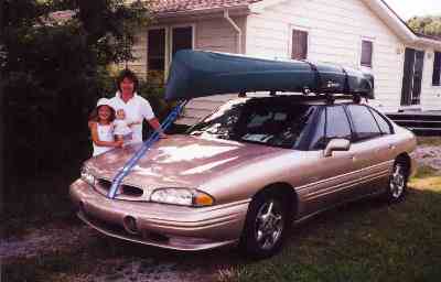 | However, when we paddle back on the Sound, we hold a dissenting opinion. We prefer a canoe. Our Old Town Pack, the green craft shown above left and right here, can do everything touring kayaks can do with several advantages they don't have. First, we can sit up higher, which allows us to see better. Second, we can slide forward onto our knees and lean into our strokes, giving us greater leverage. Being able to shift from one position to another is also more relaxing than being pinned in one position for an hour or so. We have a back on our canoe seat, so the kayak offers no edge there. We have the crossbar on our canoe equipped with a drinkholder, camera bag and specially made pack with pockets for suntan lotion, raincoat, binoculars, knife, first aid kit, food, sunglasses, map, compass and waterproof flashlight. You can carry those items in a kayak by stashing them down inside by your feet but they are nowhere near as accessible. Our canoe, which we have used all over the country, weighs less than a kayak, and is easily transported on a cartop or on our shoulders from vehicle to water. | ![]() |