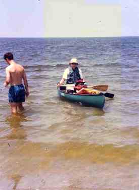 For their tours, Carolina Outdoors provides all equipment : kayak, paddle, life jacket. An introductory lesson is provided before you set out. You provide the bug spray or net, camera, water bottle and snack. The kayaks are very comfortable. You lean back against your seat and once you get the hang of the paddle, it becomes a very rhythmic process to alternate left, right, left and right. The touring kayaks they give you are long and wide bottomed, so they maintain a very straight line and do not rock from side to side. After about 15 minutes, you feel like you could paddle quite a distance. You're paddling back on the Sound, so you don't have big waves. The tours are in the early morning or mid evening, which are usually the calmest times on the Sound. Often, the water is smooth as glass. The canoe photos on this page were taken in the afternoon, which is the windiest time of day, so you'll notice the water has a slight chop, bu it's still pretty quiet. |