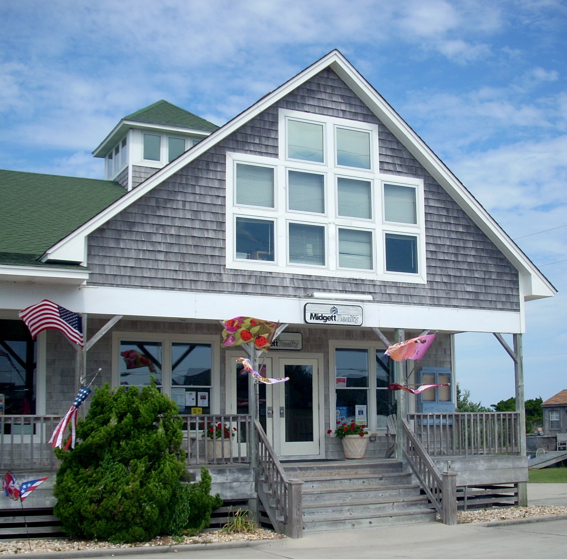 Shown here is the Avon office of Midgett Realty. Midgett now has the most houses on the island--- it has 555 --- and we think it has more beachfront houses the right size and price range for middle class families. Midgett does not have the monthly pay programs of its rivals, but it does have a four payment plan, with the first payment in Novenber. Founded in 1970, Midgett can claim over 40 years of experience, and is proud of the fact it's the only island realty company owned and managed by an island family. (The Midgetts have been on the island 350 years and achieved local fame as rescuers at the old lifesaving stations, as commercial fishermen, as as operators of the old Hatteras Island Bus, which ran up and down the beaches on deflated tires, following the hard packed sand just above the tide line for half a century before roads on the island were paved.) www.Midgettrealty.com, 877- 874-9539. |