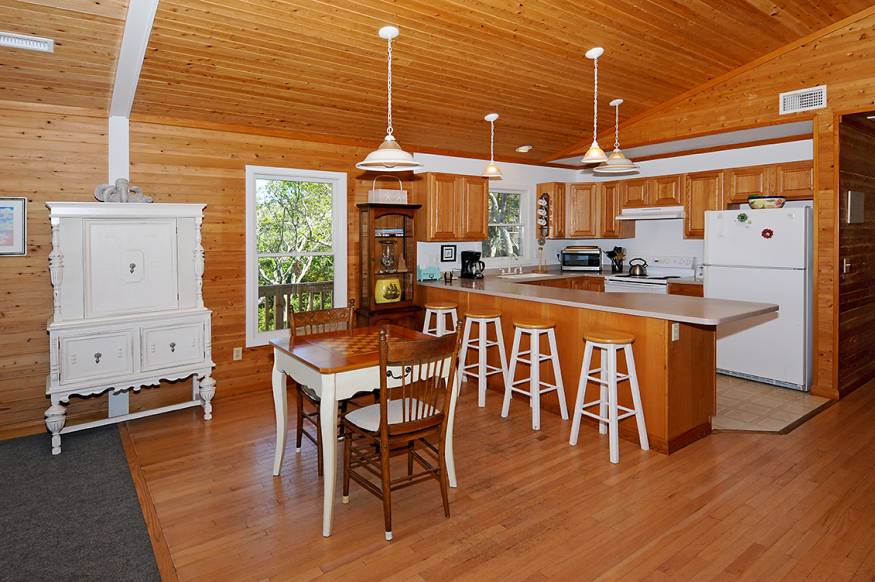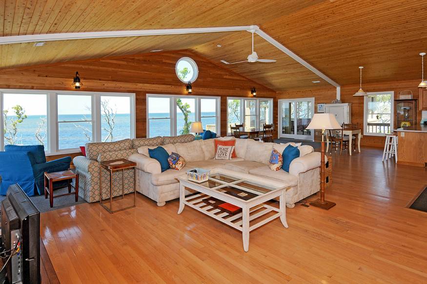 A major cottage to consider is the classic 1950s style "Beach Box." These were the original cottages out here. There are about 50 left on the island. They've all been updated and are the best bargain available, making them ideal for families on a tight budget. As a great example of a Beach Box, we recommend Cape Point Cottage, available through Midgett Realty. It's a 1955 classic beach cottage, nestled down in the dunes only a few feet from Buxton Beach with access off Old Lighthouse Road. Buxton Beach has been consistently voted the finest beach on the East Coast and a hundred yards south is the finest surfing on the East Coast. For only $3300 a week you get three bedrooms, two baths, a combination kitchen/dining/living area, an outdoor shower, fish cleaning table, screened in porch, washer & dryer, AC, WiFi and pet privileges. What you give up are beach views (you can hear the surf but not see it) and hot tub. Some people did consider the interior too dark, but a recent remodelling has brightened it up considerably. On the entire island this is the least expensive beach front lodging, plus you can see how your grandparents spent their vacations. You need to book this well in advance because it stays full all Summer and Fall. |